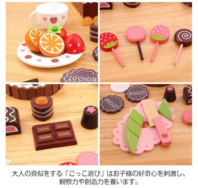 | ・かわいいスイーツ満載で、カフェごっこが盛り上がる! ・木のあたたかみがうれしい、ケーキや和菓子のセットです。 ・大人の真似をする「ごっこ遊び」はお子様の好奇心を刺激し、観察力や創造力を養います。 ・専用の大きい木箱付きで、お片付けの練習もできます。 | |