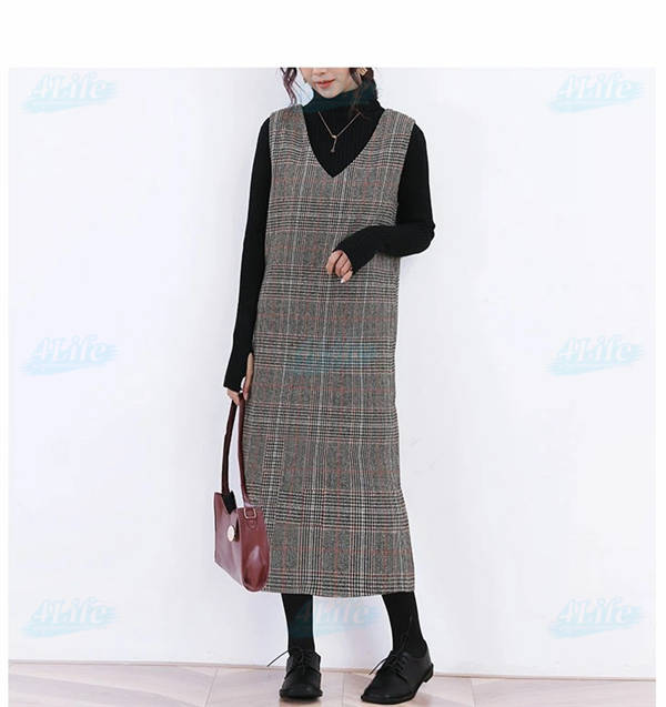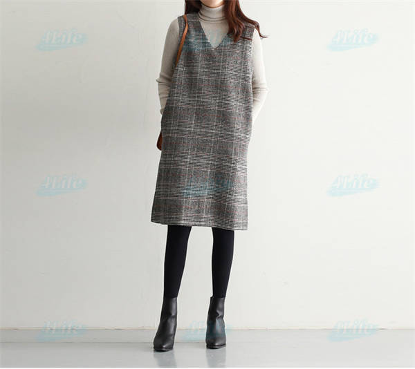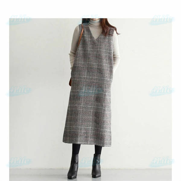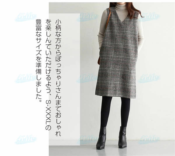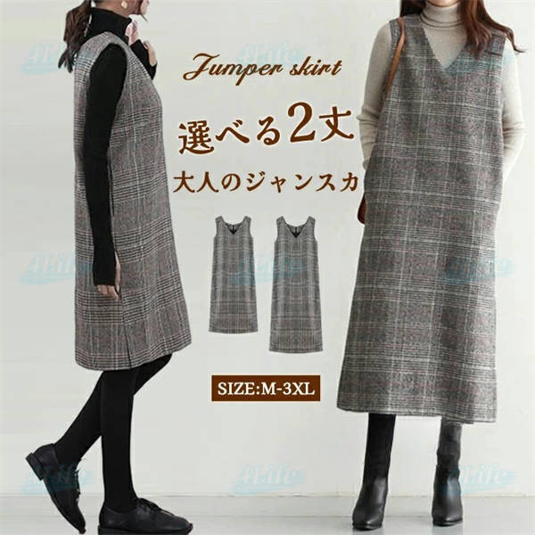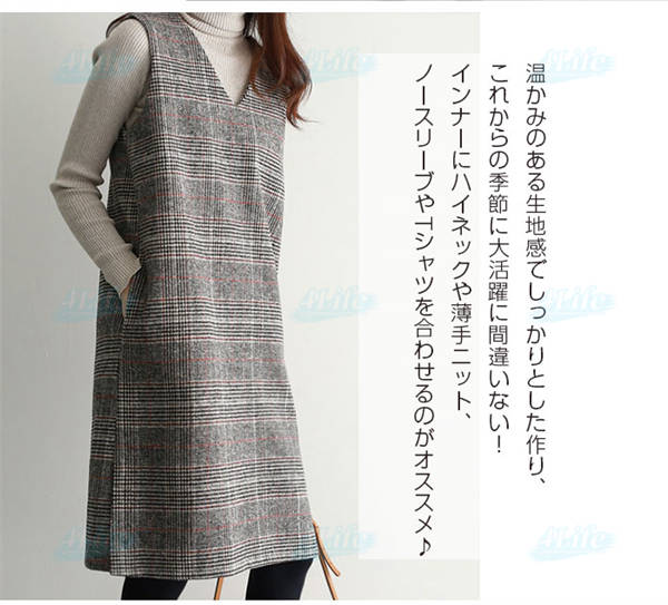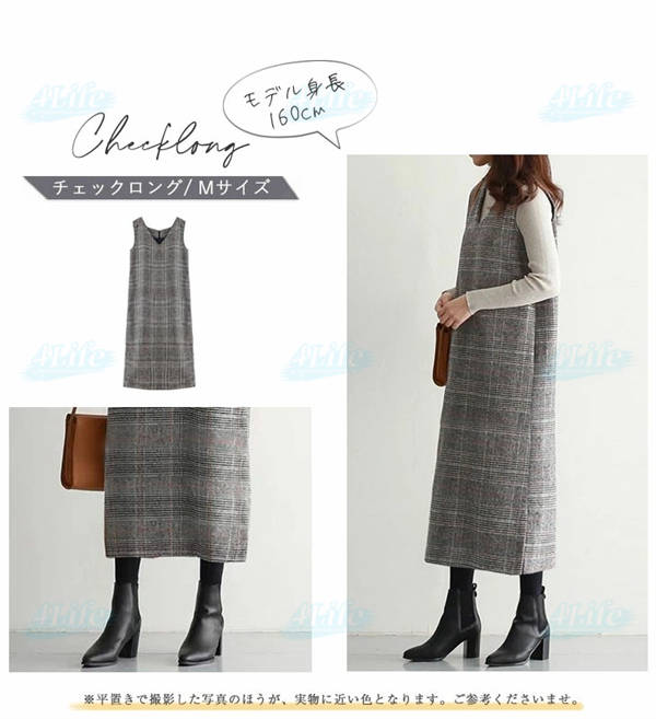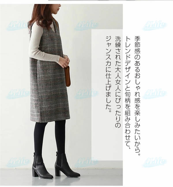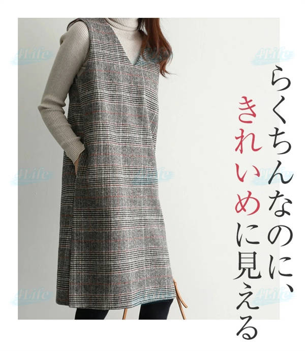 ワンピース 秋 グレンチェック レディース ジャンパースカート 大人 ジャンスカ Vネック オールインワン ワンピ ノースリーブ タンクワンピース チェック 重ね着 おしゃれ きれいめ 大人 可愛い 着痩せ 春 秋 冬