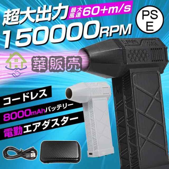 エアダスター 電動 ブロワー 【8000mAh?超強力風速60m/s】 150000RPM 風量3段階 超強力 充電式 小型 ノズル付 空気入れ PC掃除 キーボード 車内 洗車用