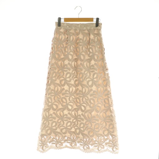 【中古】ナチュラルクチュール natural couture 23SS リボンモチーフケミカルレーススカート ロング 台形 F