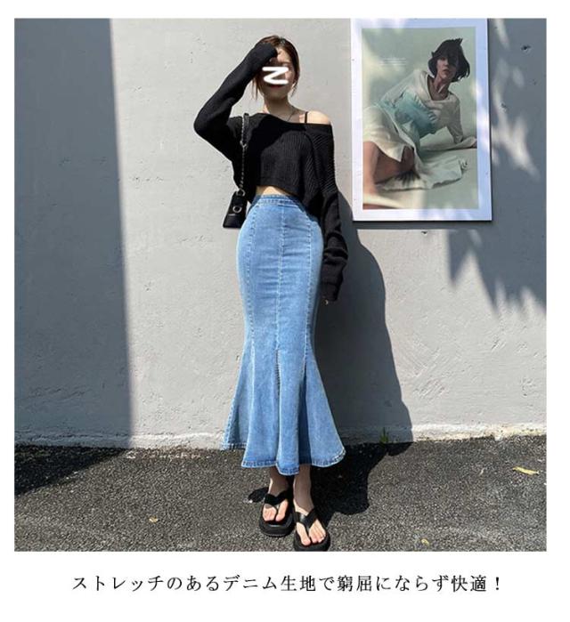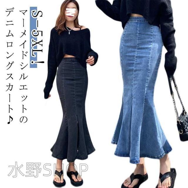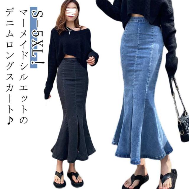 レディース タイトスカート ロングスカート デニム ハイウエスト デニムスカート フレアスカート 可愛い マーメイドスカート フレア 伸縮性 大人 無地 ストレッチ 春夏 ボトムス デニムスカート マキシスカート 秋冬 大きいサイズ ストリート BF風 ブルー ブラック