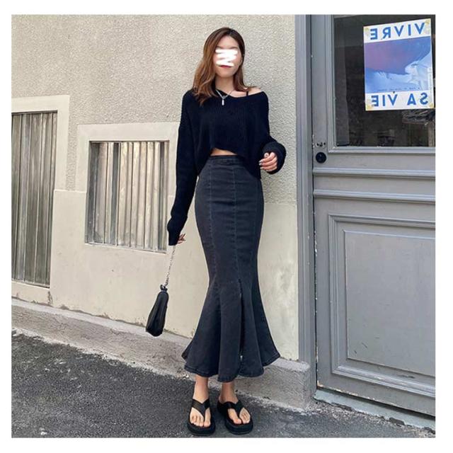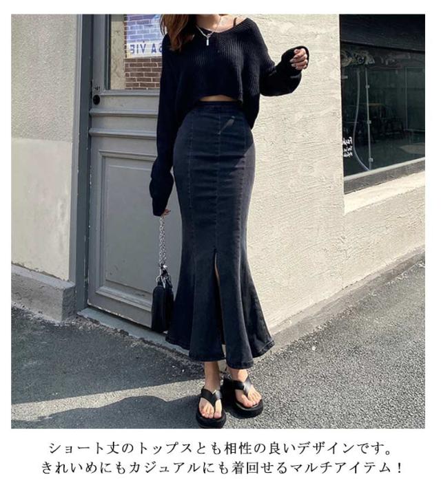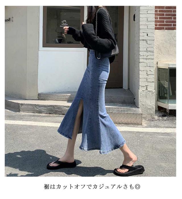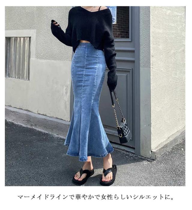 | マーメイドシルエットのデニムロングスカート♪ マーメイドラインで華やかで女性らしいシルエットに。 ストレッチのあるデニム生地で窮屈にならず快適! 裾はカットオフでカジュアルさも◎ ショート丈のトップスとも相性の良いデザインです。きれいめにもカジュアルにも着回せるマルチアイテム! | |