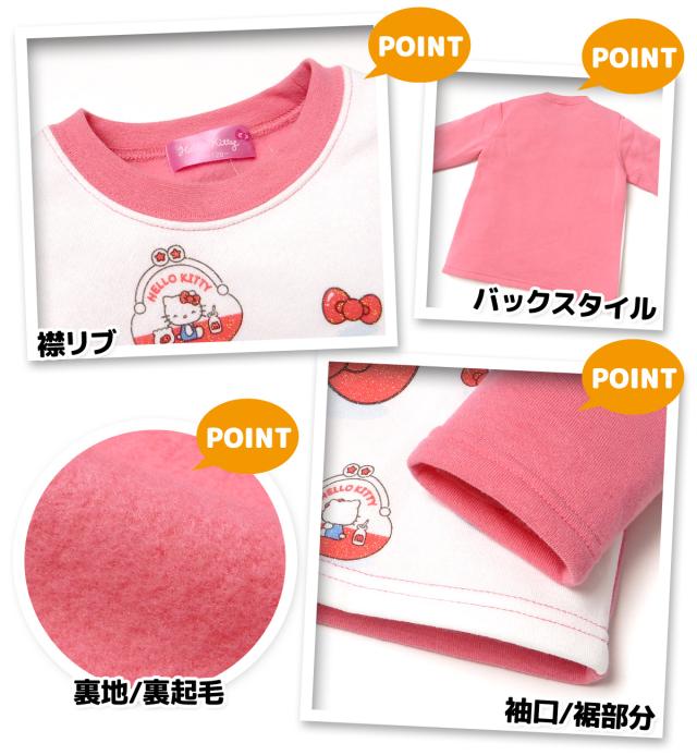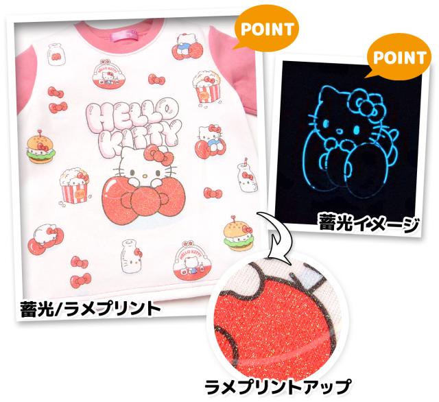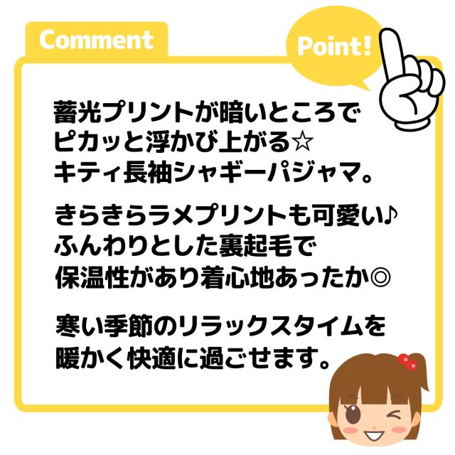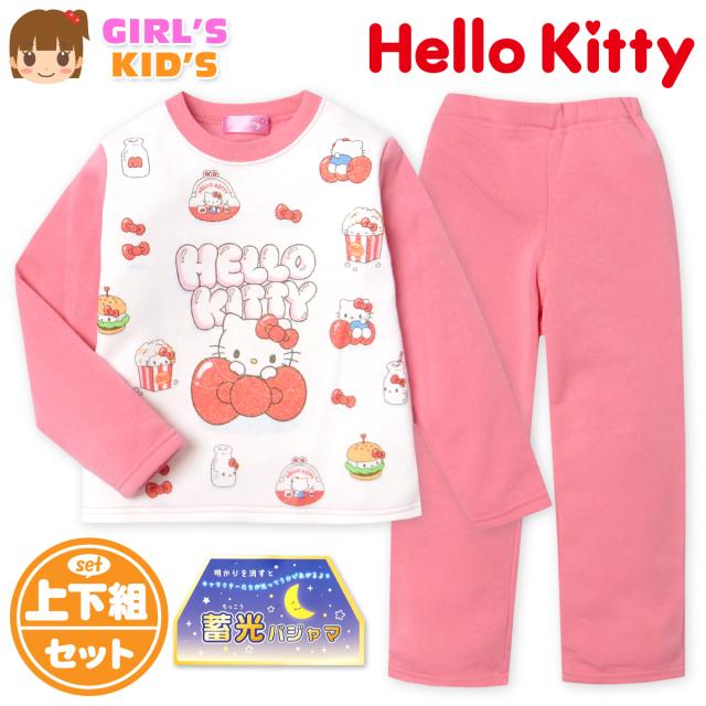 【送料無料】女児 キッズ 裏起毛 長袖 光るパジャマ Sanrio サンリオ ハローキティ 上下組 あったか素材 保温性 蓄光 ラメ 女の子 100cm 110cm 120cm 130cm td-0952【メール便対応】