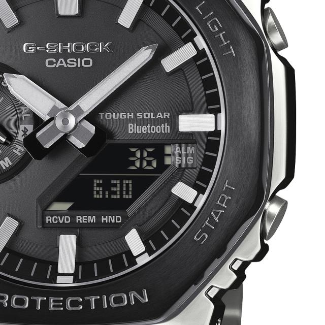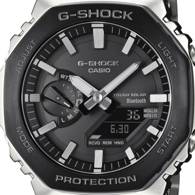 G-SHOCK フルメタル ブラックベゼル GM-B2100BT-1AJF メンズ 腕時計 ソーラー Bluetooth オクタゴン シルバー 国内正規品 カシオ 日本製