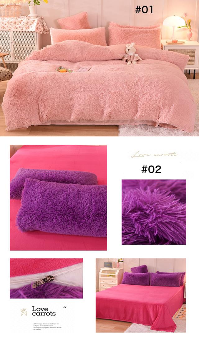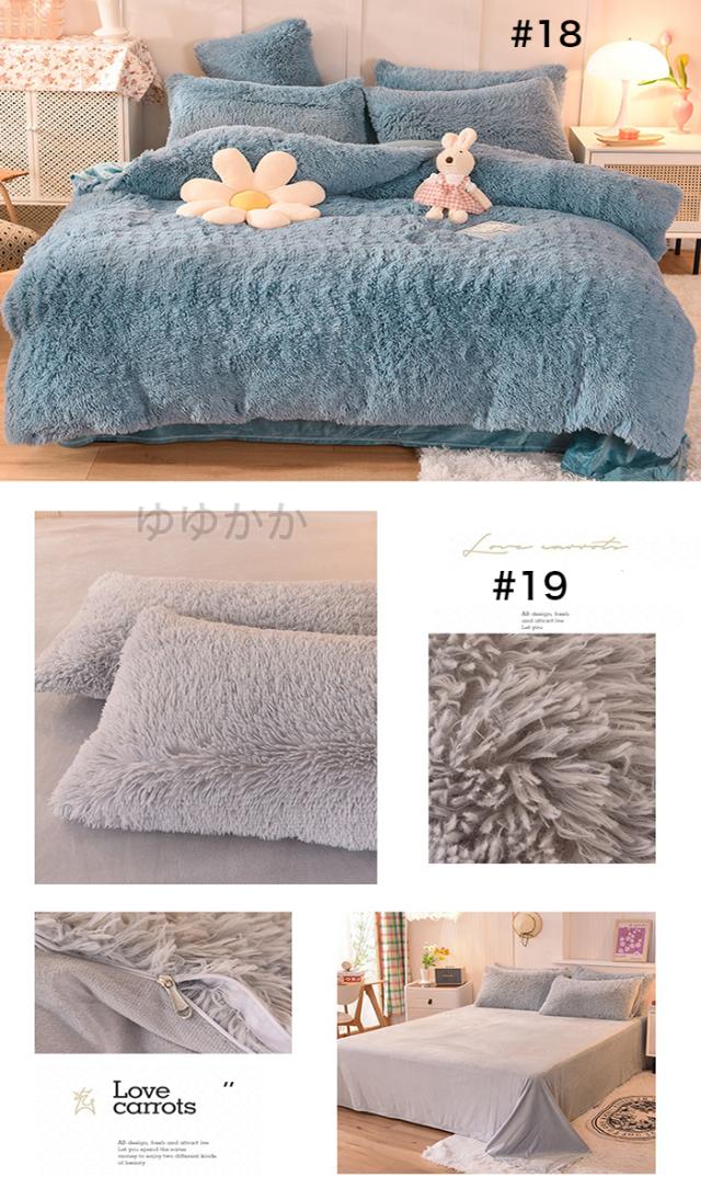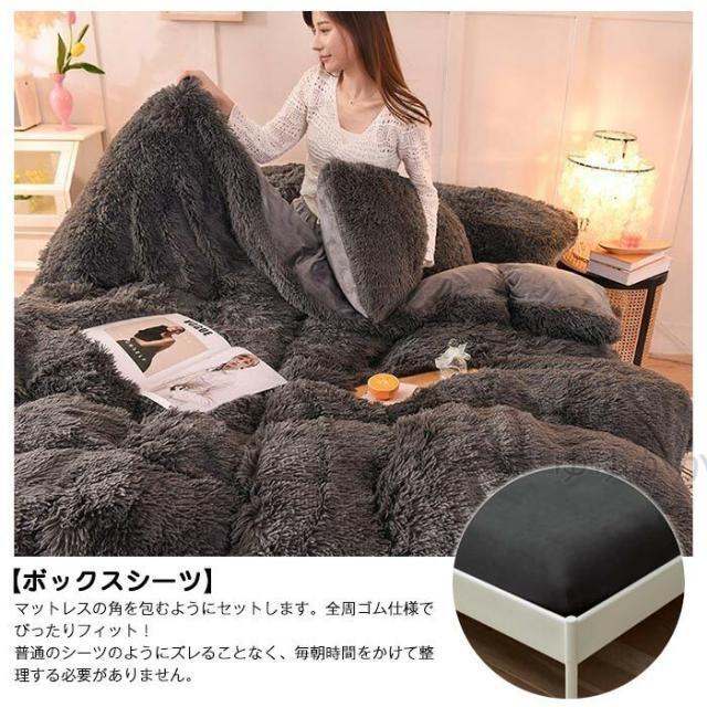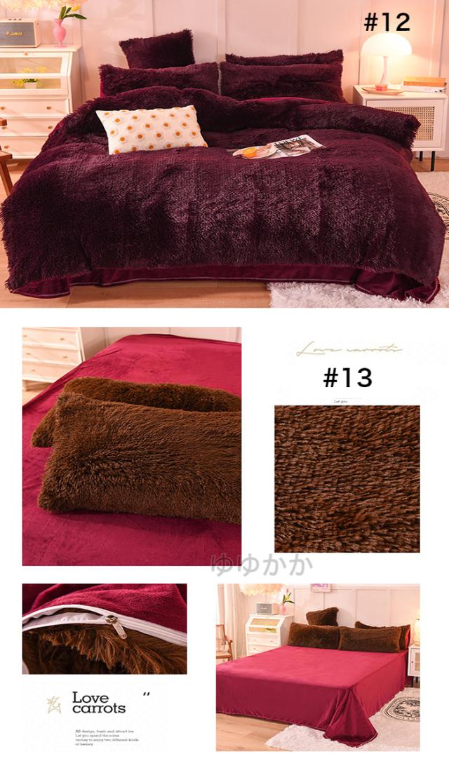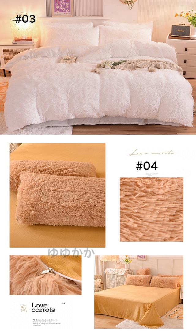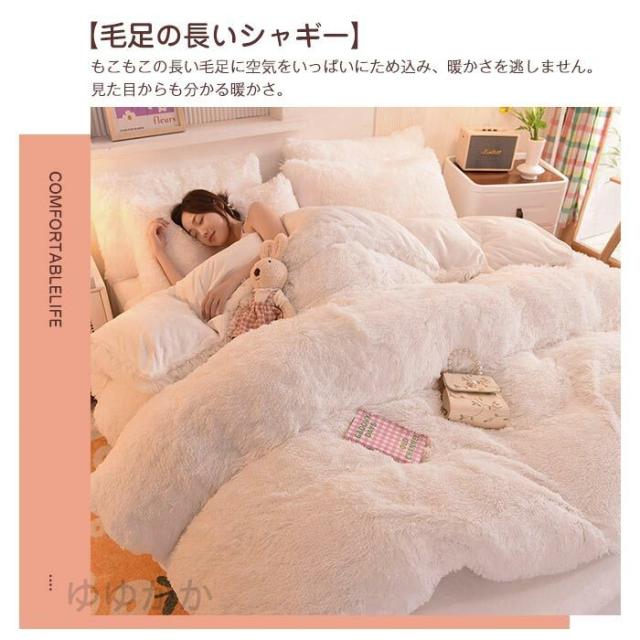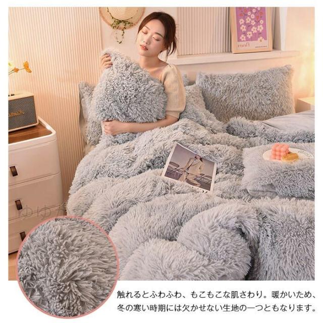 【新色追加】布団カバーセット 4点セット あったか ふわふわ もこもこ 毛足の長いシャギー 寝具カバー セット ふとんカバー 掛け布団カバー ボックスシーツ 枕カバー シンプル 暖かい おしゃれ かわいい 厚手 肌に優しい 洗える 保温 防寒 冬用 シングル ダブル