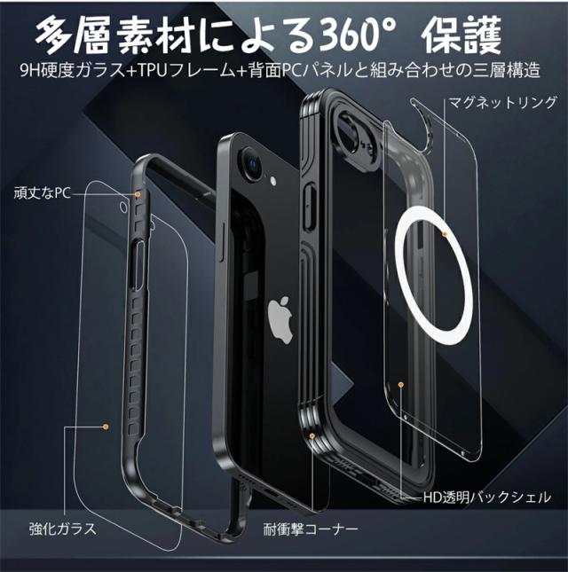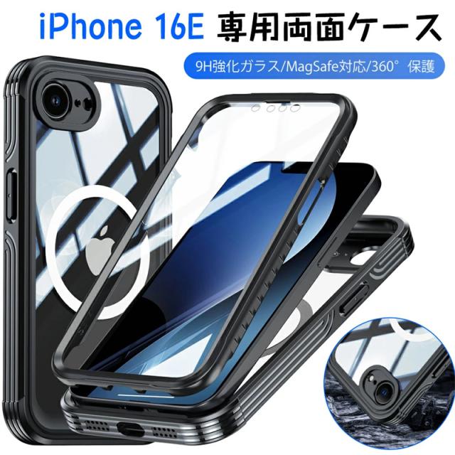 ワイヤレス充電対応 iPhone 16E ケース カバー iPhone 16E 専用 ケース 両面ケース 透明ケース 2025 9H強化ガラス フルカバー 360°全身保護 ワイヤレス充電対応 耐衝撃 レンズ保護 全身バンパー保護ケース マグセーフ対応 マグネット搭載 脱着簡単 防塵