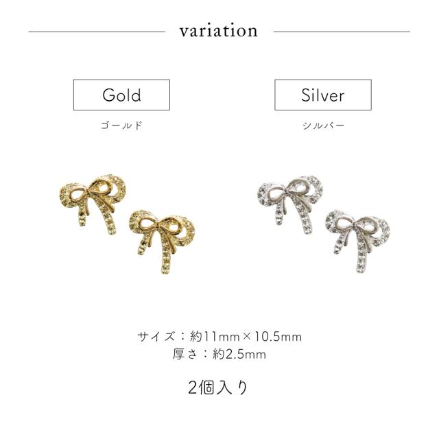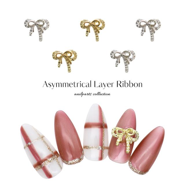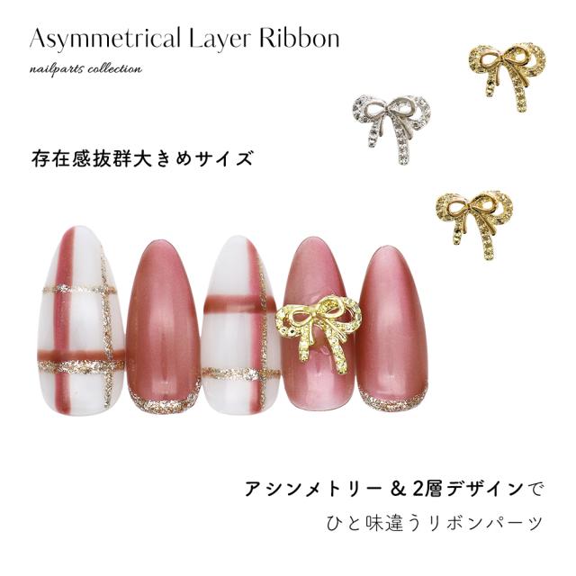 ネイルパーツ アシンメトリーレイヤーリボンパーツ [ゴールド 金/シルバー 銀] 全2色 2個入り