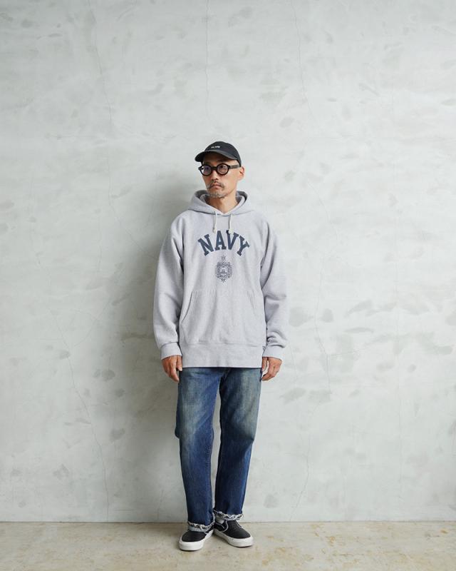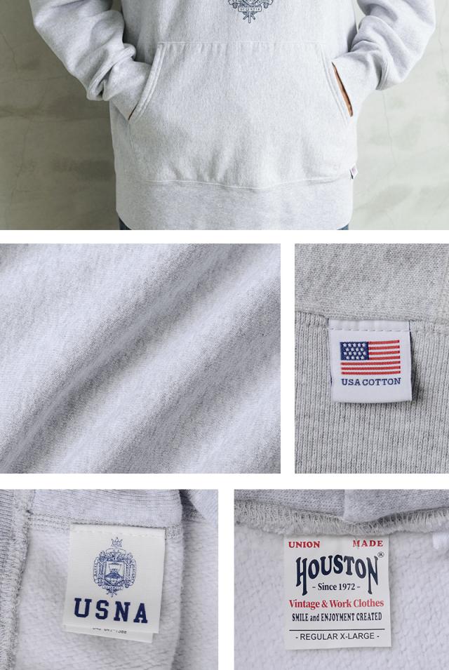 HOUSTON ヒューストン 22312 U.S.コットン NAVY プリント フーディー スウェットシャツ【T】【Cx】|メンズ アメカジ ミリタリー パーカー ネイビー ヴィンテージ ロゴ トレーナー カジュアル