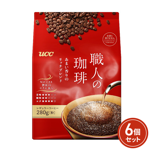 商品名 職人の珈琲 あまい香りのリッチブレンド 280g×6個セット 容量 280g×6個 原材料名 コーヒー豆(生豆生産国名:ブラジル、ベトナム) アレルギー特定原材料 ー 加工地 日本 賞味期限 商品の発送時点で、130日以上あるものをお届けいたします 保存方法 常温