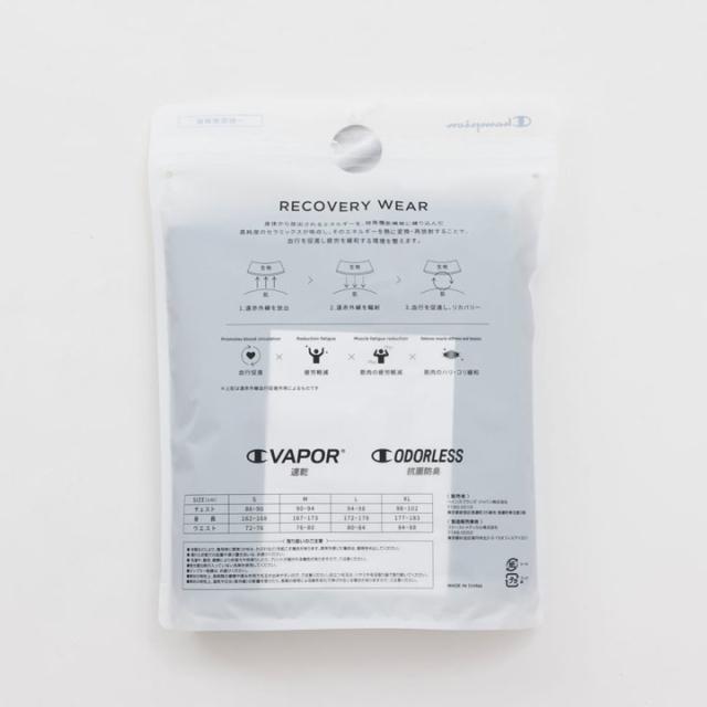 身体から放出されるエネルギーを特殊機能繊維が吸収し、そのエネルギーを熱に変換して再放射することで血行促進を促すロングパンツです。血行促進、疲労軽減、筋肉のハリ・コリの緩和、筋肉の疲れの軽減が期待ができるリカバリーウェアとして一般医療機器届出をしたアイテムです。ウエストからももにかけてゆったりとしたリラックスシルエット、ウエストはよりフィット感を得られるゴム入り仕様で、吸汗速乾、抗菌防臭機能も備えています。肌あたりを軽減する三本針ステッチを採用。左裾にChampion?(チャンピオン)ロゴを身生地と同色のラバープリントで入れています。同素材のショートスリーブTシャツ(C3-CS390)、ロングスリーブTシャツ(C3-CS490)も展開しているので、セットアップでの着用もオススメです。
