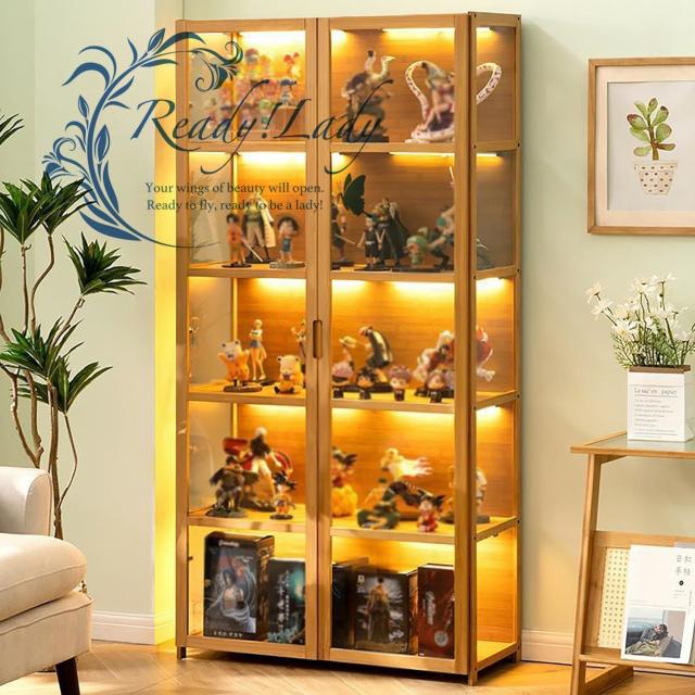 大特価☆ コレクションケース 竹枠アクリルショーケースコレクションキャビネットコレクション 大容量 コレクションボード 床置きロッカー収納キャビネットロ 62x33x130cm