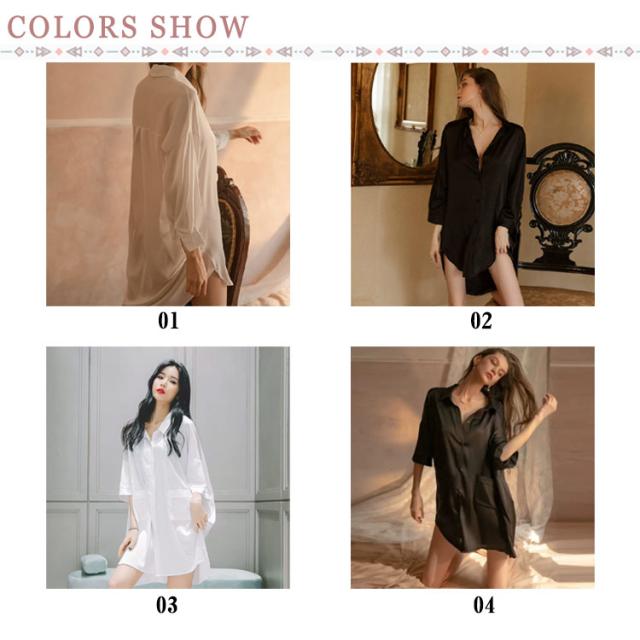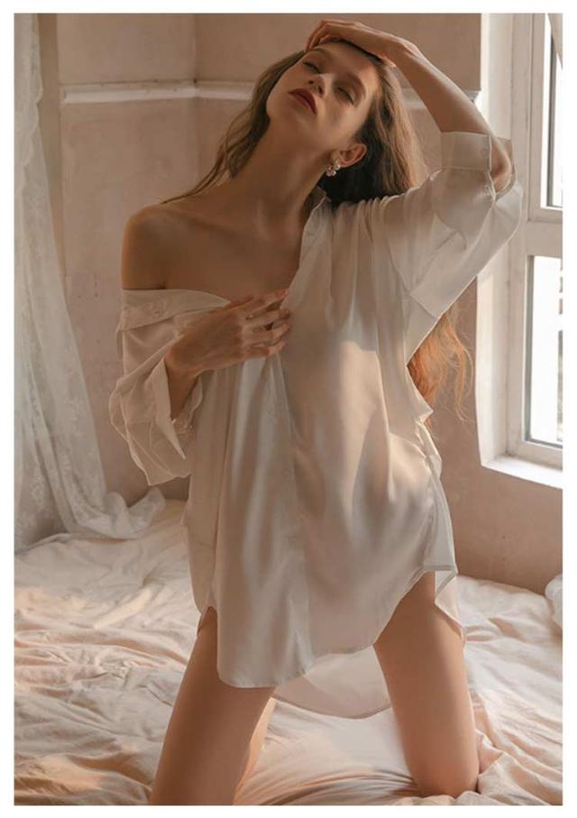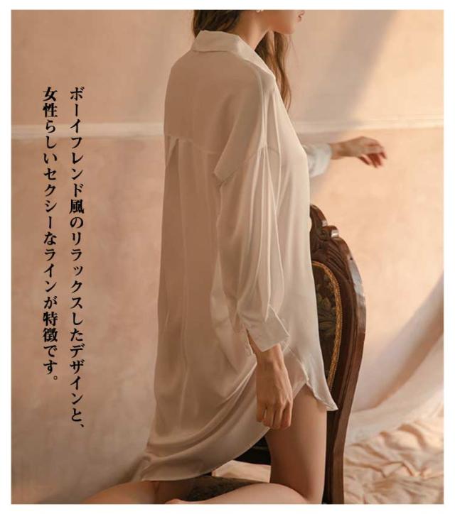 | ボーイフレンド風のリラックスしたデザインと、 女性らしいセクシーなラインが特徴です。 誘惑的な制服風デザインで、 夜のお楽しみタイムにぴったりなアイテム。 ロングドレスとして着ても、スリップドレスとしても、 魅力を引き立てます | |