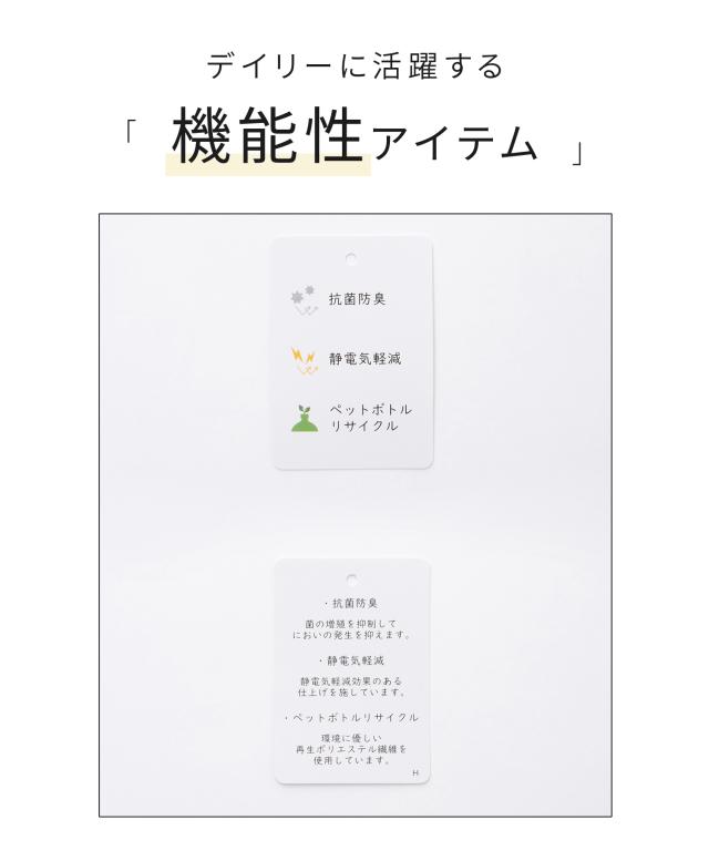 気になる菌やにおいにも安心の『抗菌防臭』と、乾燥する季節にうれしい『静電気軽減』の機能付き。