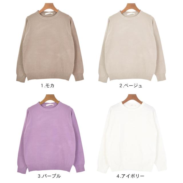 ニット レディース 長袖 秋 冬 トップス クルーネック 丸首 チクチクしない きれいめ セーター ニットソー カットソー プルオーバー 薄手 オフィスカジュアル シンプル 無地 もっちり おしゃれ かわいい 上品 fk25 (bdg518)