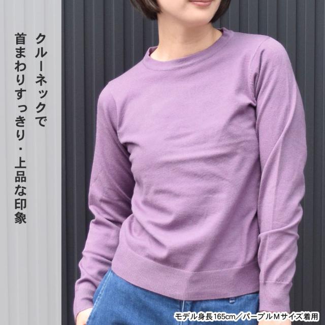 【ニット レディース 長袖 秋 冬 トップス クルーネック 丸首 チクチクしない きれいめ セーター ニットソー カットソー プルオーバー 薄手 オフィスカジュアル シンプル 無地 もっちり おしゃれ かわいい 上品】