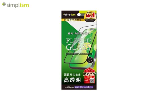 [iPhone 17 Pro専用]Simplism シンプリズム [FLEX 3D]高透明 複合フレームガラス(ブラック)