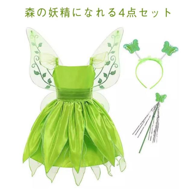 ハロウィン 羽 ハロウィン ドレス コスプレ 蝶々 4点セット 妖精 ヘッドアクセサリー付き キッズ コスプレ 衣装 コスチューム お花の妖精 精霊 女の子 妖精ドレス ハロウィン 仮装 文化祭 クリスマス 100-150cm