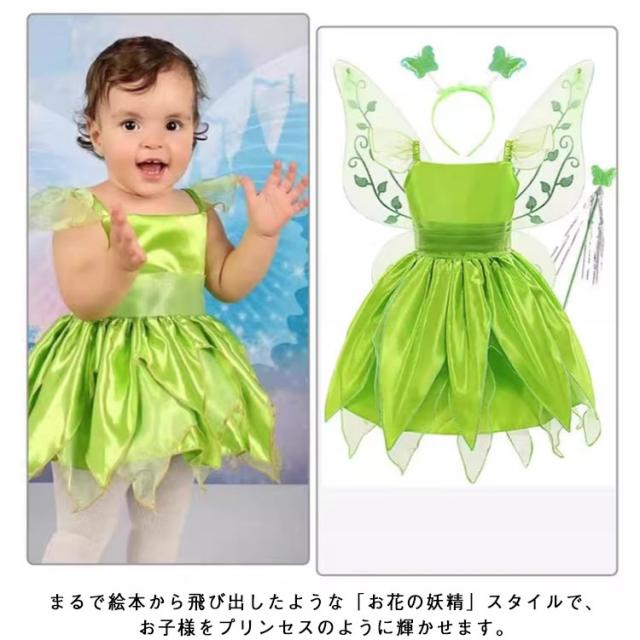 | 森の妖精になれる4点セット? 羽・ヘッドアクセサリー・ドレス・スティックが揃った豪華コスチューム。 まるで絵本から飛び出したような「お花の妖精」スタイルで、お子様をプリンセスのように輝かせます。 特別な日の思い出にぴったり。可憐で幻想的な妖精コーデで、お子様の笑顔がさらに輝きます。 | |