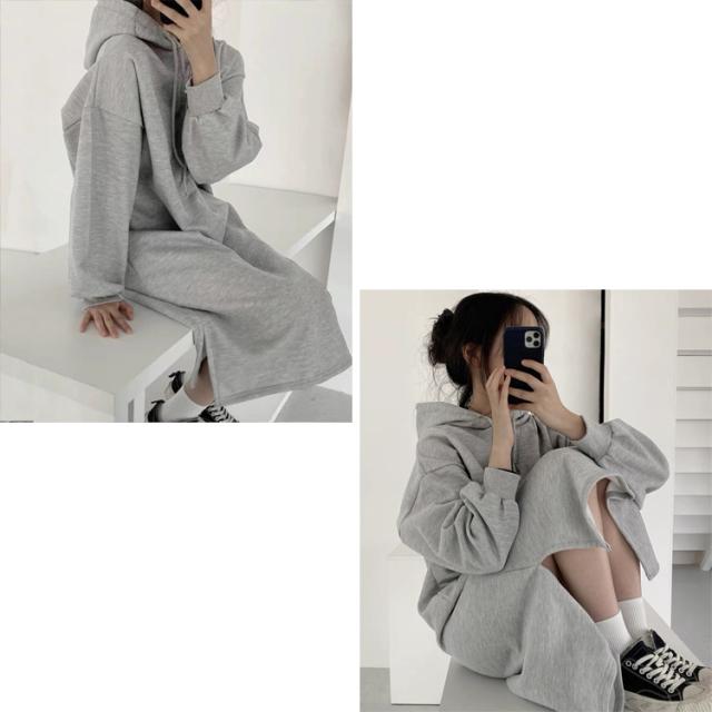 全品送料無料一部除く サイドスリット パーカー ロングワンピース【即納】ワンピース ワンピ ロングワンピ 長袖 フード付き スウェット トレーナー 高身長 低身長 体型カバー ゆったり レディース 韓国 Y2Kファッション 韓国ストリート 流行り トレンド かわいい
