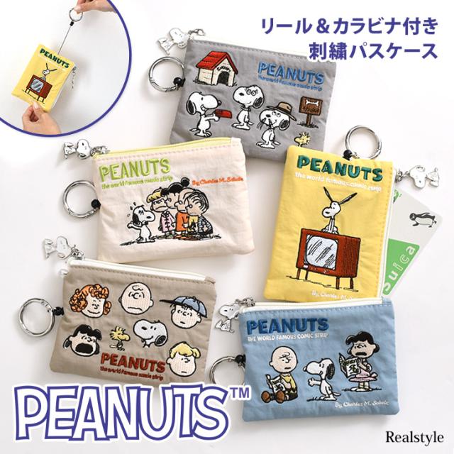 新作 スヌーピー SNOOPY パスケース リール付き キャラクター 小銭 レディース メンズ 定期入れ カード入れ キーケース ナイロン 刺繍 かわいい