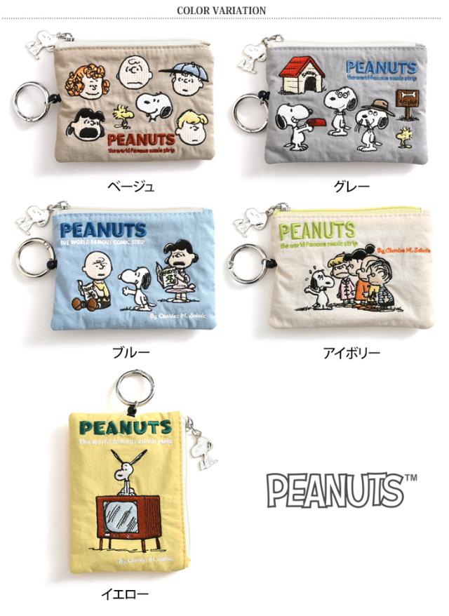 スヌーピーなどのピーナッツキャラクターが描かれた刺繍パスケース