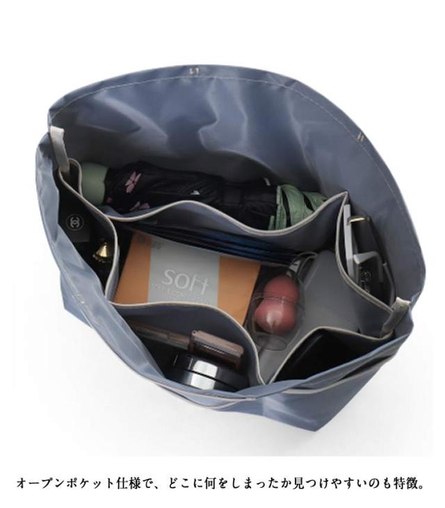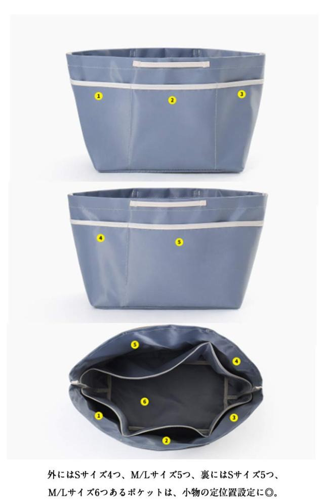 | バッグインバッグ 通勤バッグ・トートに S M L カバンの中身の整理整頓に便利なバッグインバッグ。 外にはSサイズ4つ、M/Lサイズ5つ、裏にはSサイズ5つ、M/Lサイズ6つあるポケットは、小物の定位置設定に◎。 オープンポケット仕様で、どこに何をしまったか見つけやすいのも特徴。 薄型に見えて、ハリのあるナイロン素材を使うことで、自立しやすいのも◎。 カジュアルバッグにはもちろん綺麗目なレザートートにも相性◎です。 | |