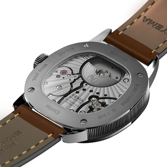 | 仕様 | 5気圧防水 日差:-3〜+7秒 振動数:28,800 A/h パワーリザーブ:70時間 スモールセコンド バックスケルトン フランス製 |