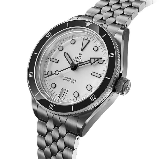 正規品 イエマ スーパーマン Dato CMM.10 フランス製 メンズ 腕時計 12.25.11.67.SN.M2 YEMA SUPERMAN アナログ ホワイト 白 ◆YEMA(イエマ)は、1948年以来のフランスの歴史的なブランドです。YEMAワークショップは、スイス国境沿いのジュラ山塊のオードゥーにあり、フランスの小さな町モルトーを拠点としています。歴史的および地理的要素により、フランスの時計製造会社YEMAは独自の「メゾン」機械式ムーブメントを設計することができました。 6時位置の日付窓はレイアウトにバランスと対照性をもたらし、洗練されたモダンなデザインをさらに際立たせています。高品質なダブルドーム型サファイアクリスタルには反射防止コーティング(AR)が施されていて視認性の向上と堅牢性の強化とともに確固としたヴィンテージの外観を誇示しています。ジルコニア・セラミックベゼルは、類いまれなる光沢仕上げを実現。洗練されたエレガンスを提供すると同時に耐擦傷性、退色耐性、耐腐食性、UV耐性という優れた機能性も兼ね備えています。ベゼルは常時ロック状態がデフォルトなため、ダイビング時だけでなく日常生活においての誤作動を防止します。 機械式腕時計