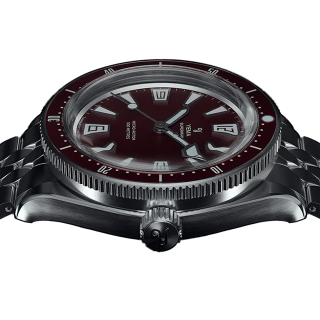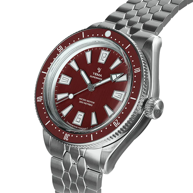 正規品 イエマ スキンダイバーCMM.20 フランス製 メンズ 腕時計 12.25.20.11.SN.M3 YEMA アナログ ボルドー 赤 ◆YEMA(イエマ)は、1948年以来のフランスの歴史的なブランドです。YEMAワークショップは、スイス国境沿いのジュラ山塊のオードゥーにあり、フランスの小さな町モルトーを拠点としています。歴史的および地理的要素により、フランスの時計製造会社YEMAは独自の「メゾン」機械式ムーブメントを設計することができました。 YEMA の象徴的な1960年代のスキン ダイバーズを現代的に解釈したこのアイテムは、手首に着けたときに見た目も感触も素晴らしく、ヴィンテージの雰囲気と独特のレトロな雰囲気を醸し出しています。スケールスリムブレスレットを装備したスキンダイバーCMM20は驚くほど快適な着け心地で、水中だけでなく日常のシーンでも違和感ないスタイリッシュさを備えています。ベゼル上部にクランプを配置しリューズ操作で固定する方式の従来モデルと比較して、新しいベゼルロック機構はベゼル下部への完全統合を実現化、無駄を省いたシンプルな美学とよりシームレスな操作感を提供します。 機械式腕時計