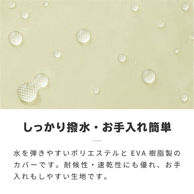 | 仕様 | ■サイズ(約):W160cm×D60cm×H100cm 収納時:W35cm×D35cm×H4cm ■材質:ポリエステル・フィルム(EVA70%・PE30%)・スチール・ポリプロピレン テープ・プラホック:ポリプロピレン ■付属品:収納袋 ■重量(約):550g |