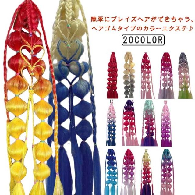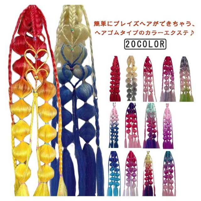 | 簡単にブレイズヘアができちゃう、ヘアゴムタイプのカラーエクステ♪ 根本は通常のヘアゴムなので、ポニーテールやツインテールにそのまま付ける事もできます!! フェスやダンスなどのイベントで映えるヘアスタイルにしたい時はもちろん、普段のヘアスタイルにさりげなく取り入れても◎ 程よいサイズ感と可愛いデザインが、どんなテイストのヘアアレンジにもマッチしてくれるデイリーアイテムになっています。 カラーバリエーションも豊富で、さまざまなアレンジを楽しめます。 子供から大人まで、幅広く着用することが可能です。 | |