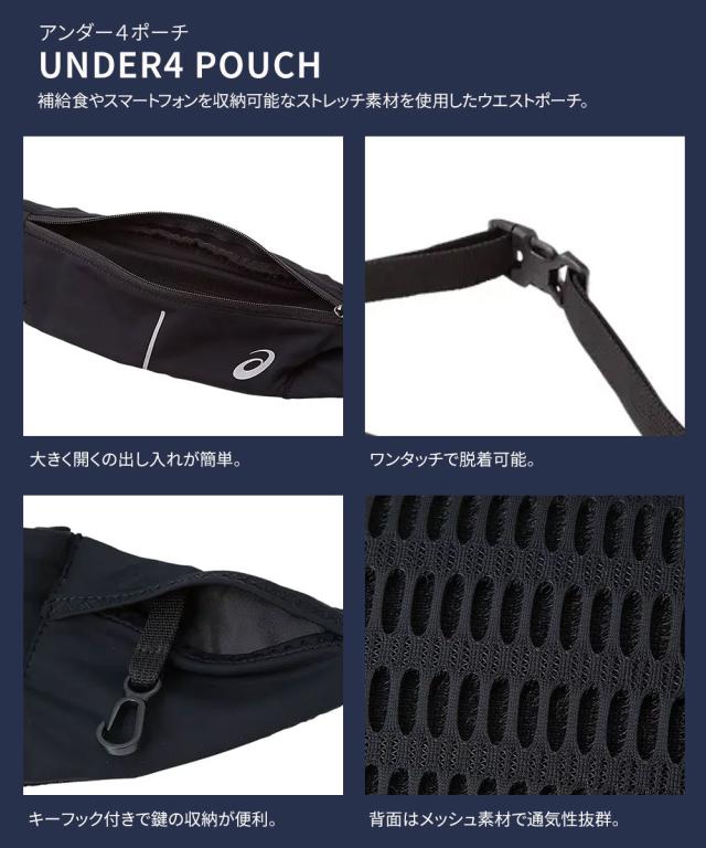 補給食やスマートフォンを収納可能なストレッチ素材を使用したウエストポーチ。