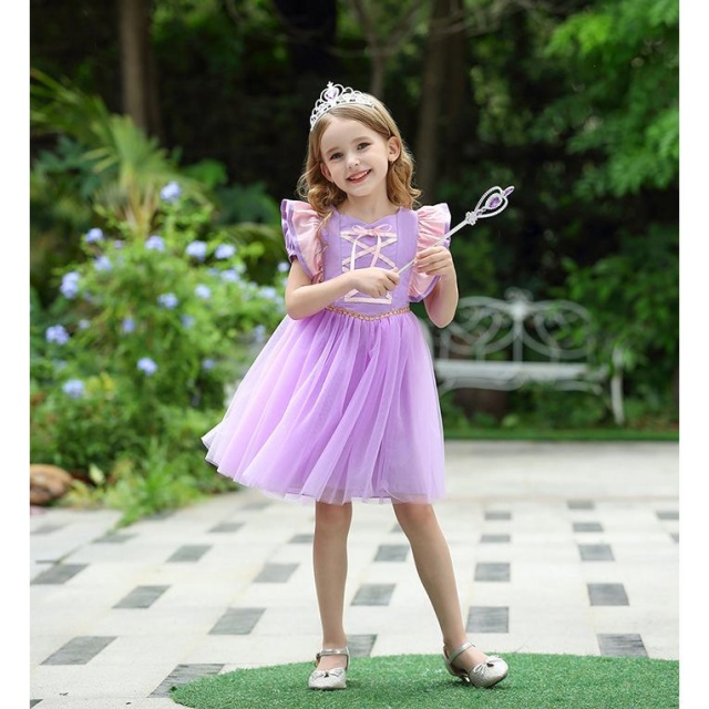 プリンセス ラプンツェルドレス パープル ハロウィン コスプレ 塔の上の 子供服ドレス 女の子 なりきり プリンセス ワンピース送料無料