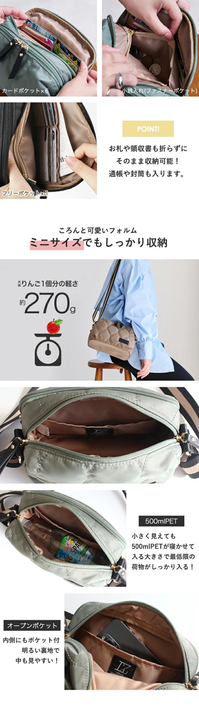 ショルダーバッグ 軽量 レディース お財布バッグ お財布ポシェット ミニショルダー ナイロン 撥水 斜め掛け 大容量 キルティング おしゃれ LIZDAYS リズデイズ 大人 ミニバッグ ナイロンバッグ 上品 トラベル お出かけ urban【lz-70523】