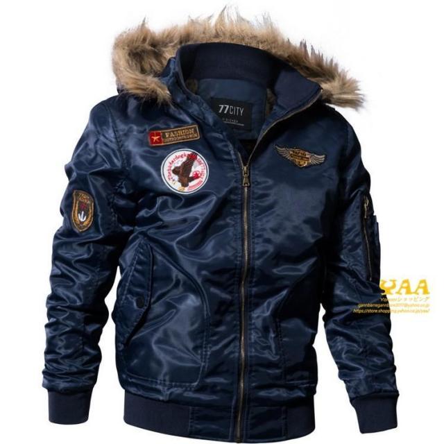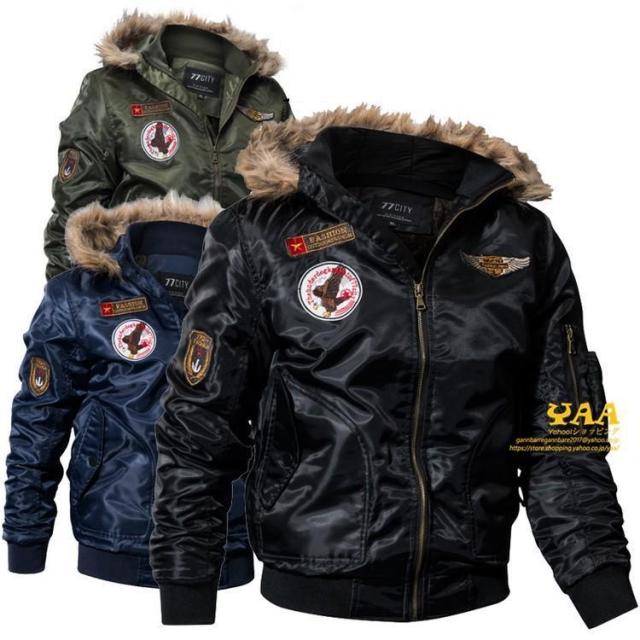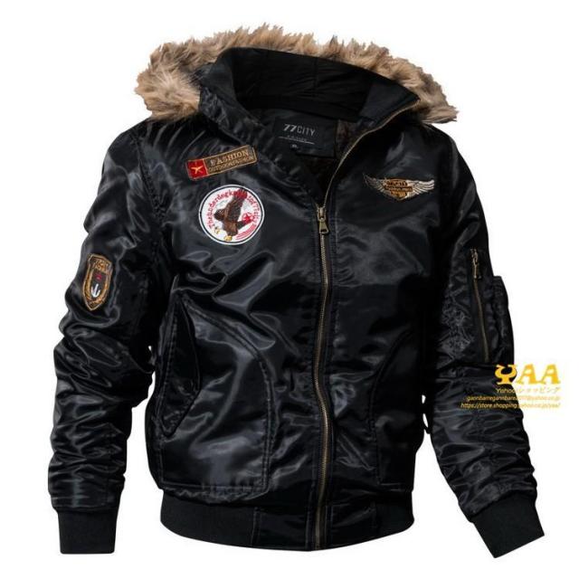 ファーミリタリージャケット メンズ N-2B フライトジャケット 裏ボア 裏起毛 ファーフード ブルゾン アウター 防風 撥水 アウトドア