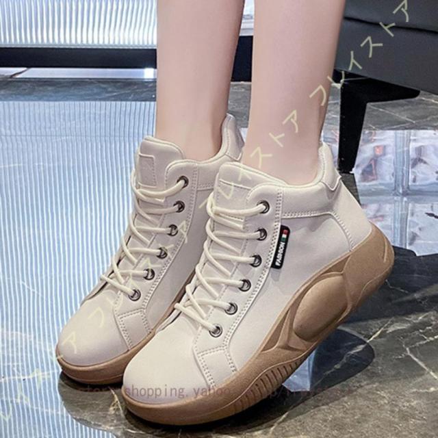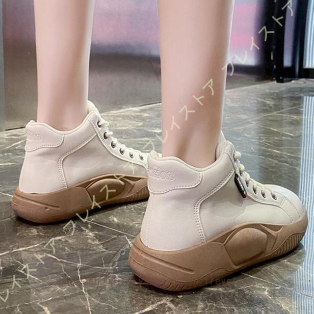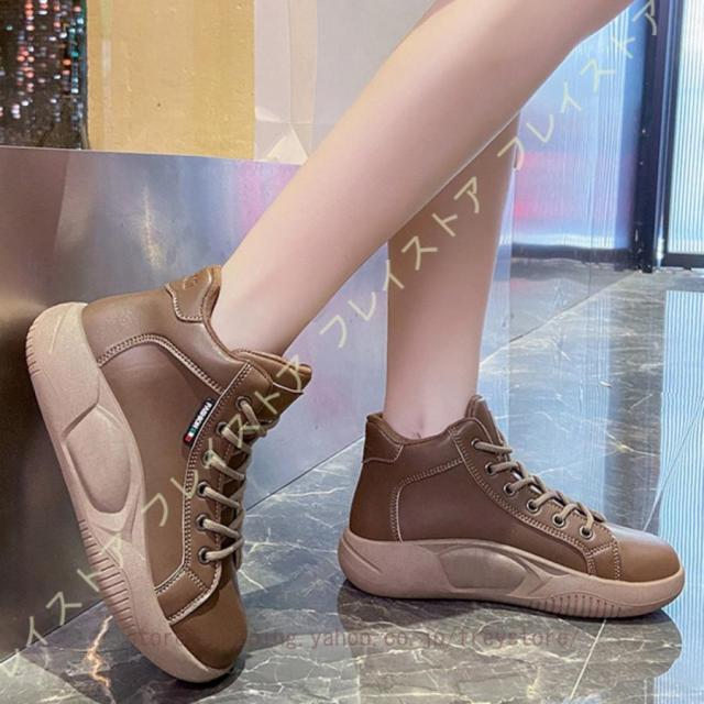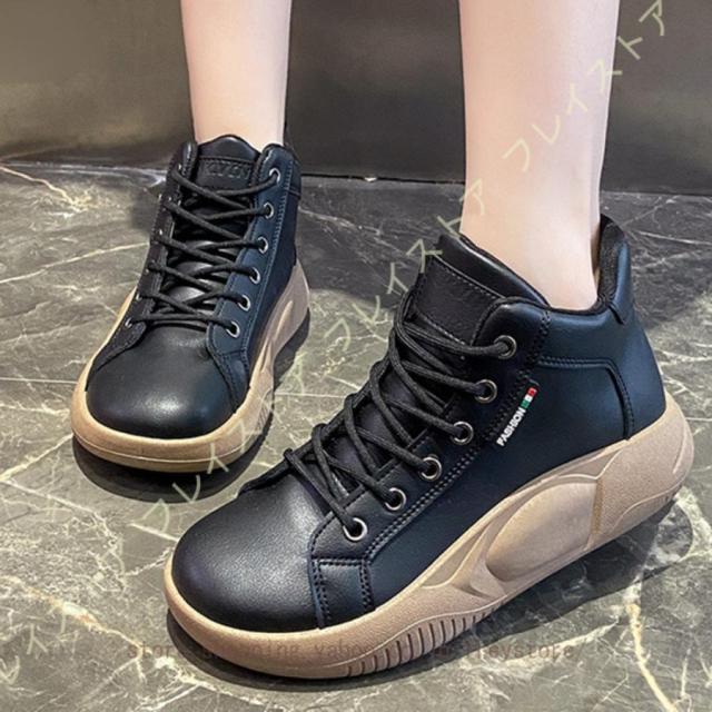 厚底スリッポン ハイカットスニーカー 運動靴 ブーツ レディース 可愛い 厚底 スリッポン レースアップブーツ 防水 軽量 美脚 レディース 厚底スニーカー 軽量