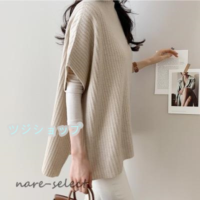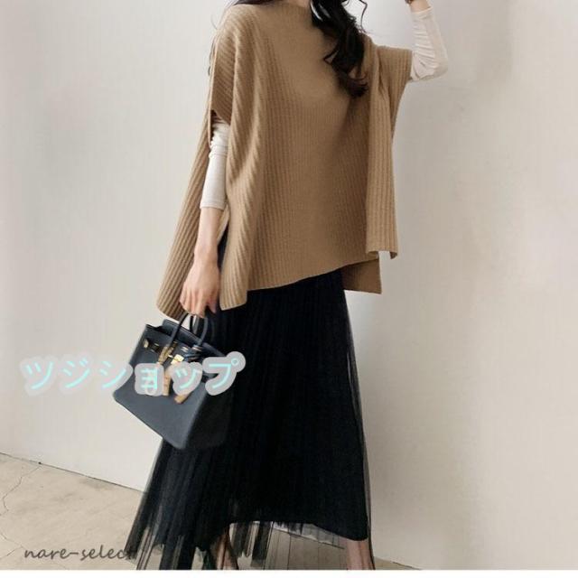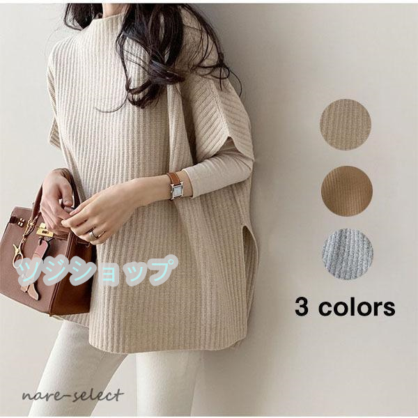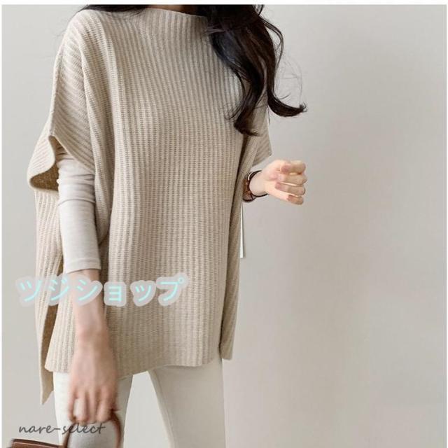 春コーデ ニットベスト レディース 秋 シルエット ポンチョ風 セーター ポンチョ 秋冬 オーバーニット スリット カジュアル ゆったり 大きめ 職場 新作