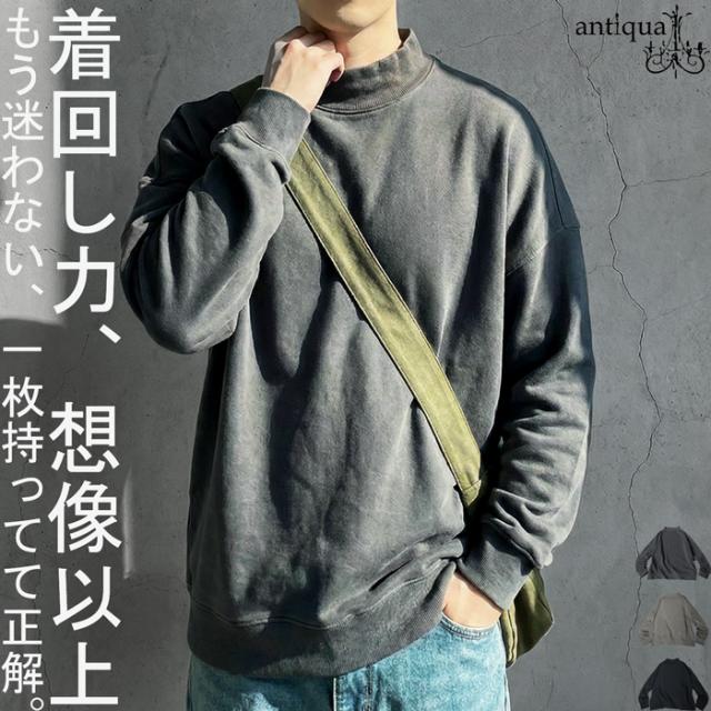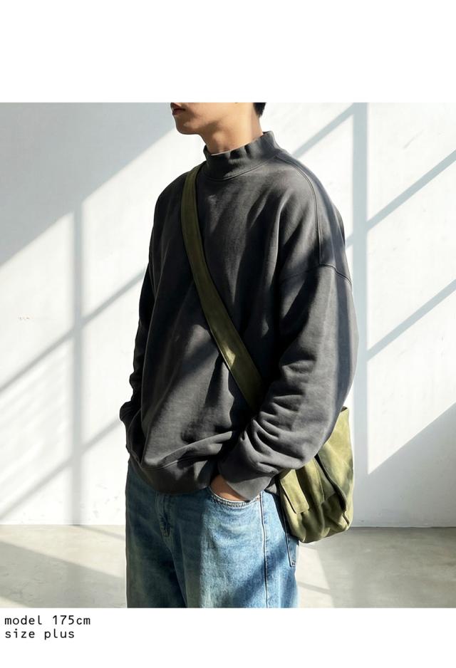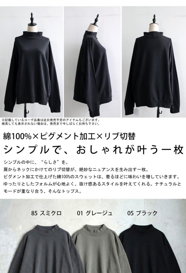 za-00290z プルオーバー ハイネック モックネック 綿100 綿 コットン ビッグシルエット 長袖 リブ切替 無地 カジュアル トレーナー 体型カバー ゆったり オーバーサイズ 着回し