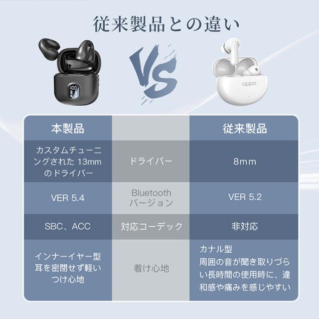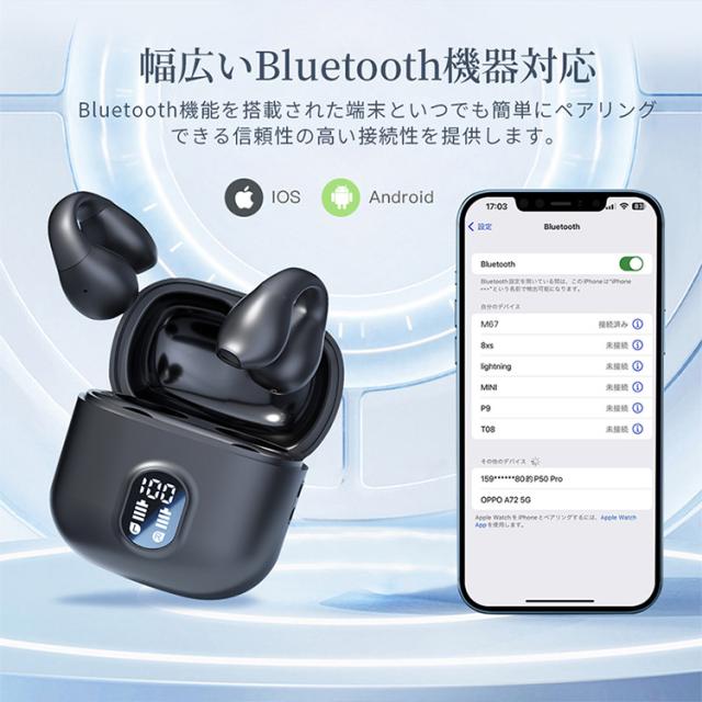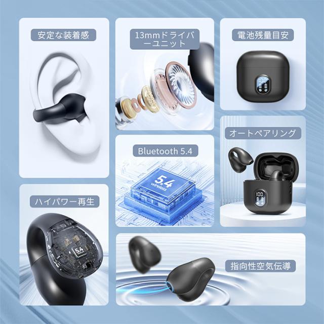 ワイヤレスイヤホン BLUETOOTH5.4 完全ワイヤレスイヤホン 耳を塞がない インナーイヤー型 片耳 両耳 防水 開放感 電池残量目安 iOS Android 技適認証済み