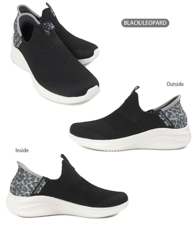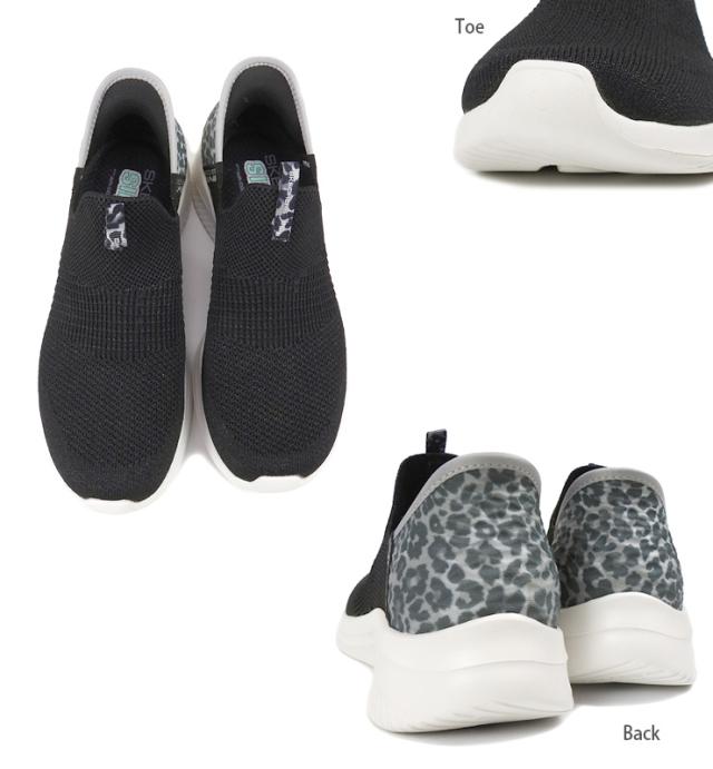 【箱アウトレット】スケッチャーズ ウルトラ フレックス 3.0 ナチュラル ステップ ローカット スニーカー 23 23.5 24 24.5 レディース ブラックレオパード SKECHERS ULTRA FLEX 3.0-NATURAL STEP Hands Free Slip-ins ハンズフリー スリップインズ 149712/BKLD sh2310
