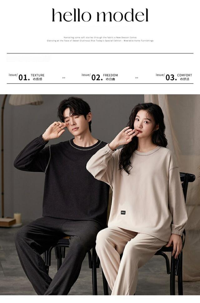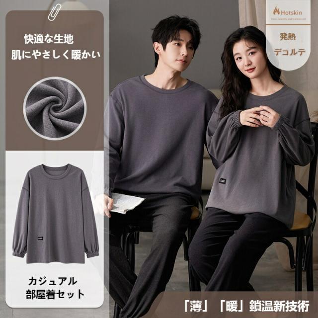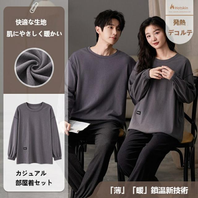 パジャマ レディース メンズ ラウンドネック 秋冬 冬用 ペア ルームウェア 大きいサイズ M~2XL かわいい 長袖 秋 冬 外出 プレゼント ペアパジャマ カップル 結婚祝い