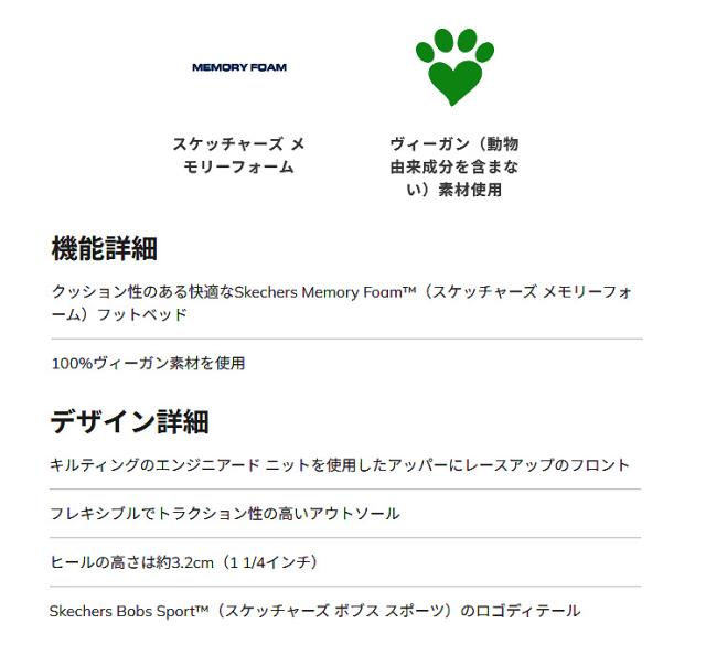 キルティングのエンジニアード ニットを使用したアッパー、クッション性のあるSkechers Memory Foam(スケッチャーズ メモリーフォーム)コンフォート インソールが特長のレースアップシューズ。