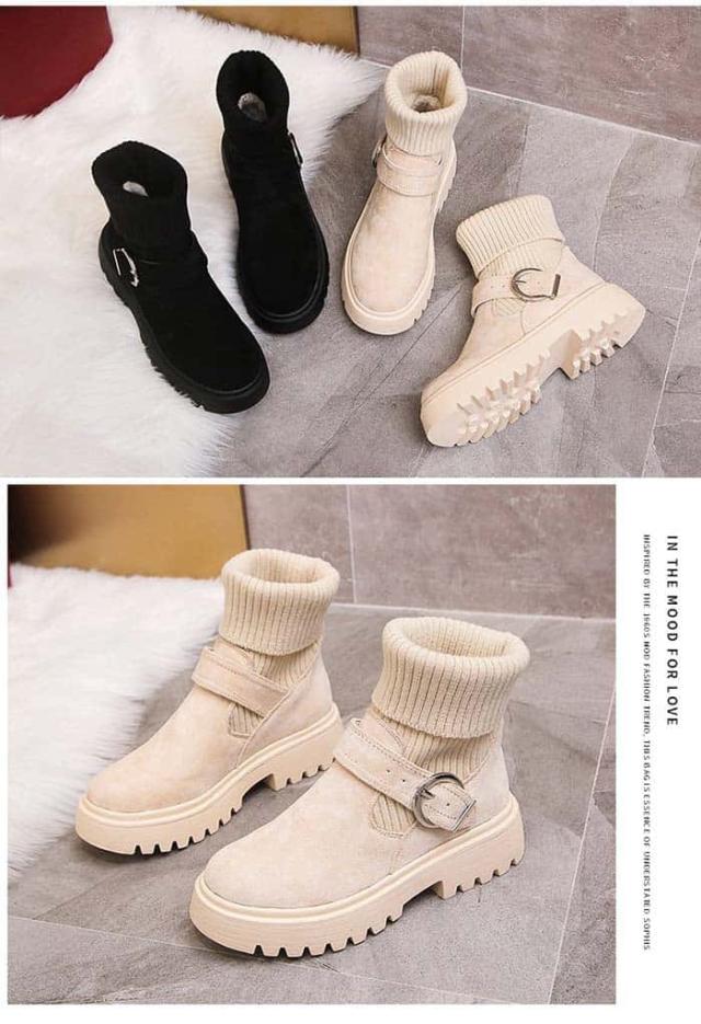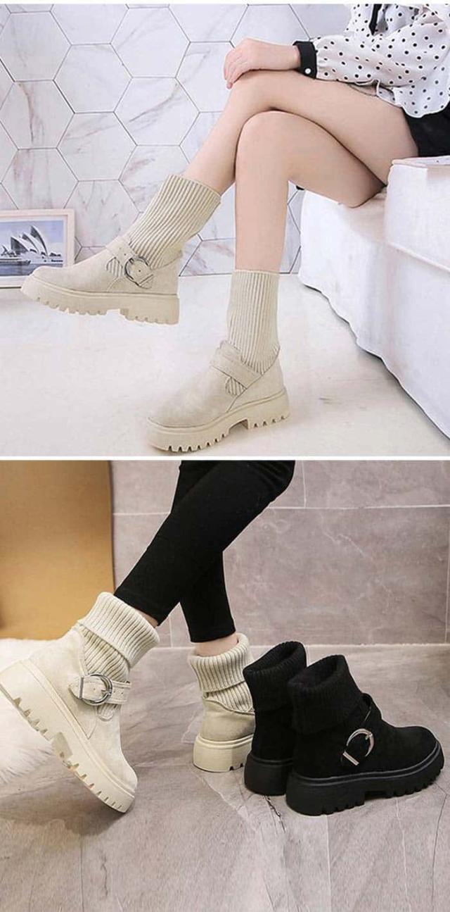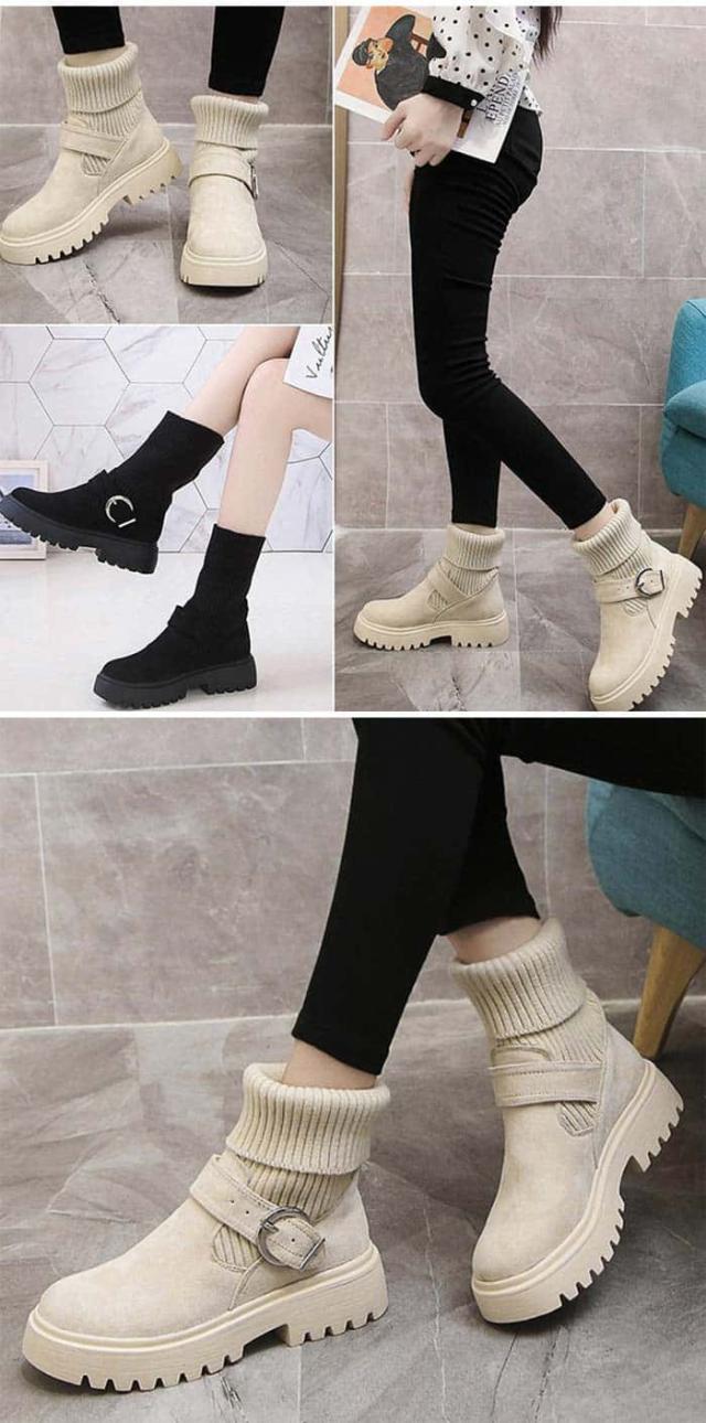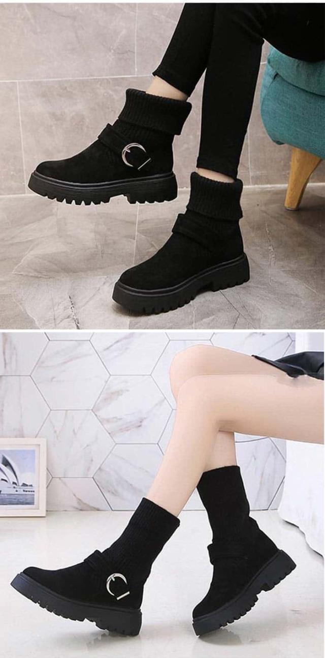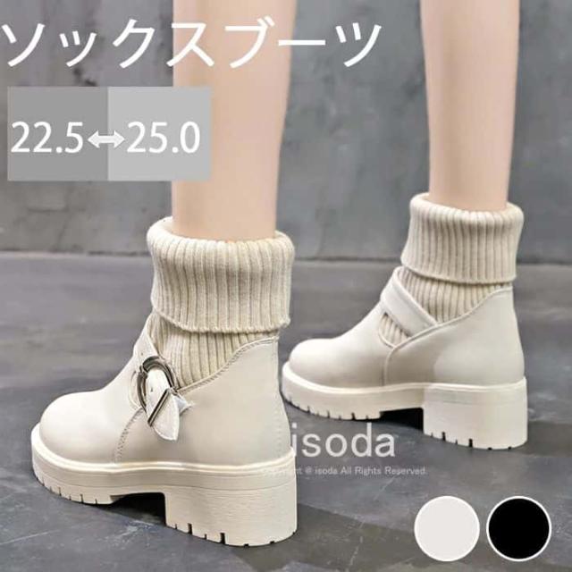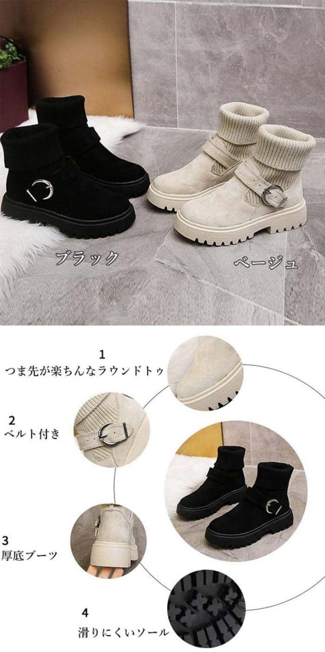 | 商品名 | ソックス風 ショートブーツ レディース 2wayニットブーツ バックルベルト 厚底ブーツ 歩きやすい ハイカット ブーツ おしゃれ |