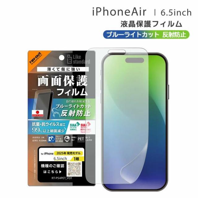 iPhoneAir 6.5インチ フィルム ブルーライトカット 反射防止 耐衝撃 抗菌 抗ウィルス アイフォン 画面保護 液晶保護 メール便送料無料