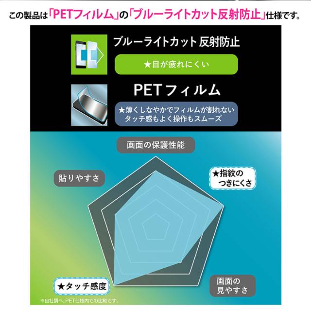 割れにくく、しなやかなPET素材を使用したブルーライトカット反射防止フィルム。