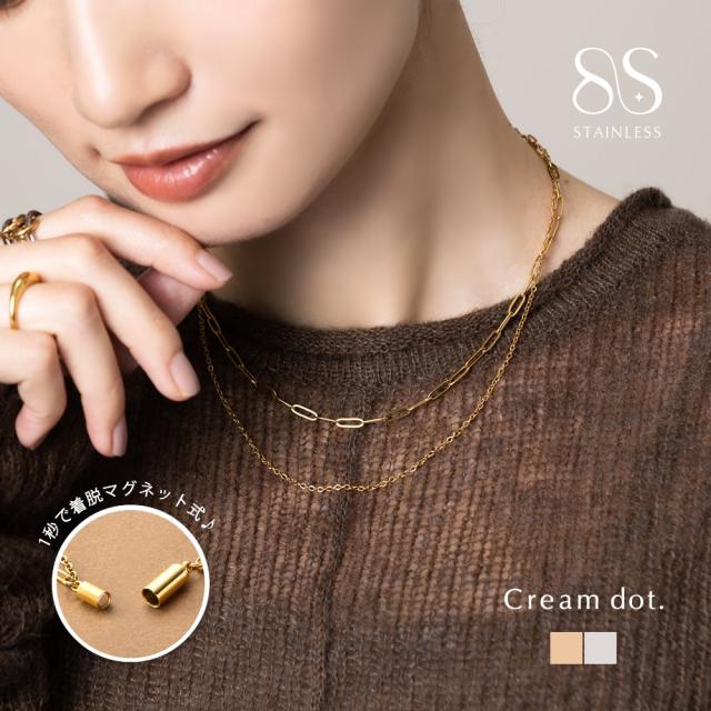 オーバルチェーン/あずきチェーンの2連ネックレス。パチッと1秒で留まるマグネットタイプの留め具で着脱も簡単♪錆びにくく傷に強いステンレス製で、デイリーに使える組み合わせが嬉しいひと品です。
