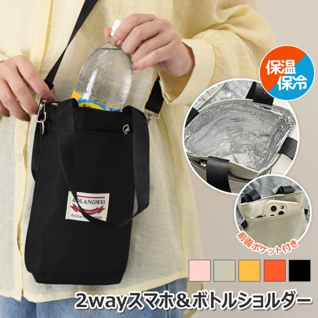 新作 保冷保温撥水2wayシンプルスマホ&ボトルショルダー ペットボトルホルダー ボトルホルダー ペットボトルカバー 水筒カバー ショルダーバッグ ハンドバッグ 保冷バッグ 小さい 軽量 肩掛け 斜めがけ スマホ