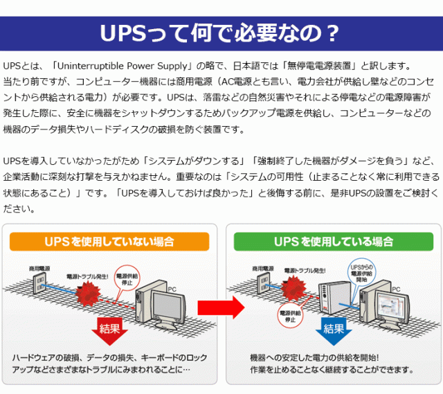UPSバッテリーバックアップを必要とする装置の電力容量とランタイムを保持し、あまり重要でない装置ではサージのみを保護します。