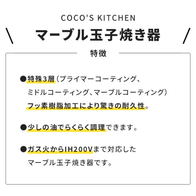 | 3層特殊マーブルコーティングの玉子焼き。 特殊3層(プライマーコーティング、ミドルコーティング、マーブルコーティング)フッ素樹脂加工により驚きの耐久性。 少しの油でらくらく調理できます。 ガス火からIH200V対応まであらゆる熱源に対応。 持ちやすいアップハンドルです。 |