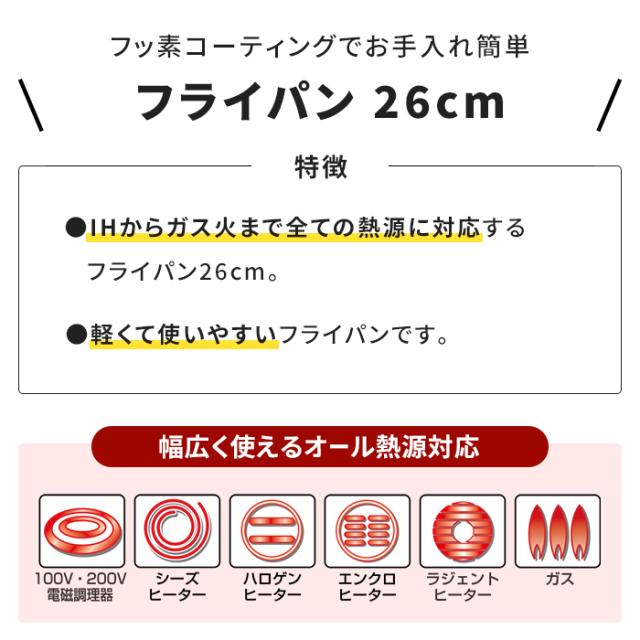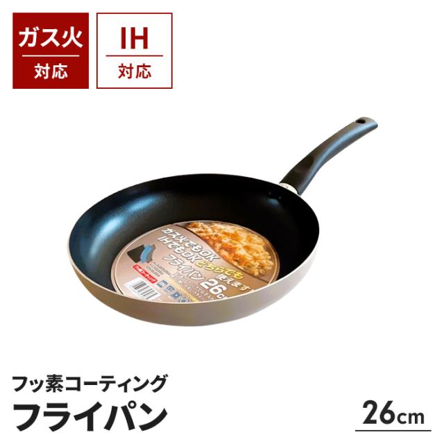 【値下げ】フライパン 26cm IH対応 軽量 フッ素コート くっつきにくい フッ素樹脂加工 コーティング 炒め鍋 ih ガス火 片手 調理用品 道具 器具 新生活 一人暮らし